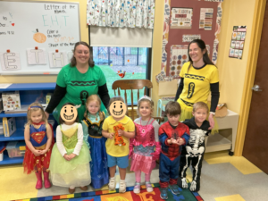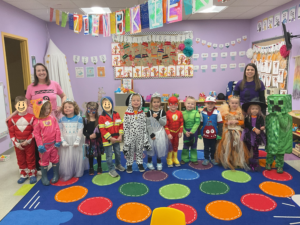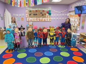 All of our classes had so much fun celebrating Halloween together! Each class had a costume parade that families could come watch. Later in the day, each class had a party with games, food, and fun! Check out our costumes!
